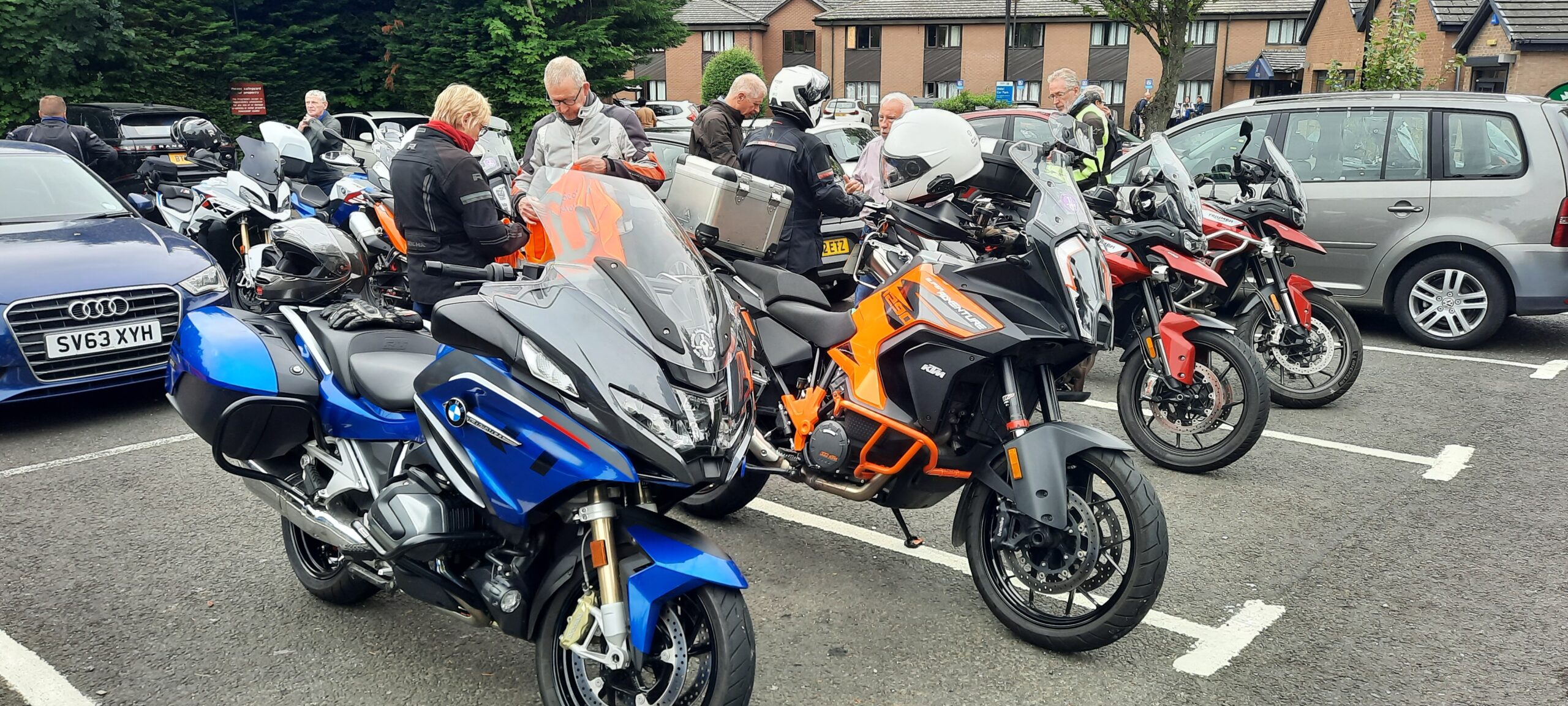 Basically a road legal bike and proper biking gear! The events are usually half day or full day ride-outs, with breaks to take in tea / coffee and nourishment but you are welcome to bring your own refreshments (we have also started “bring your own lunch” runs and these have proved popular, especially post Covid!).